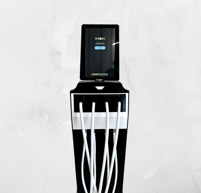 El sistema ReBorn posee 4 aplicadores ergonómicos ultraligeros, cada uno está equipado con una matriz de 63 LEDs de potencia en el rango infrarrojo de 940 nm.